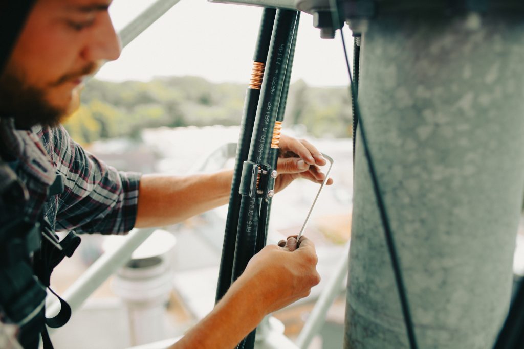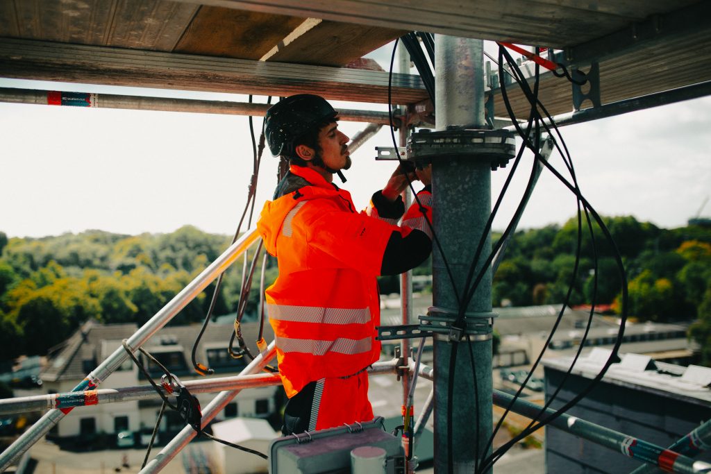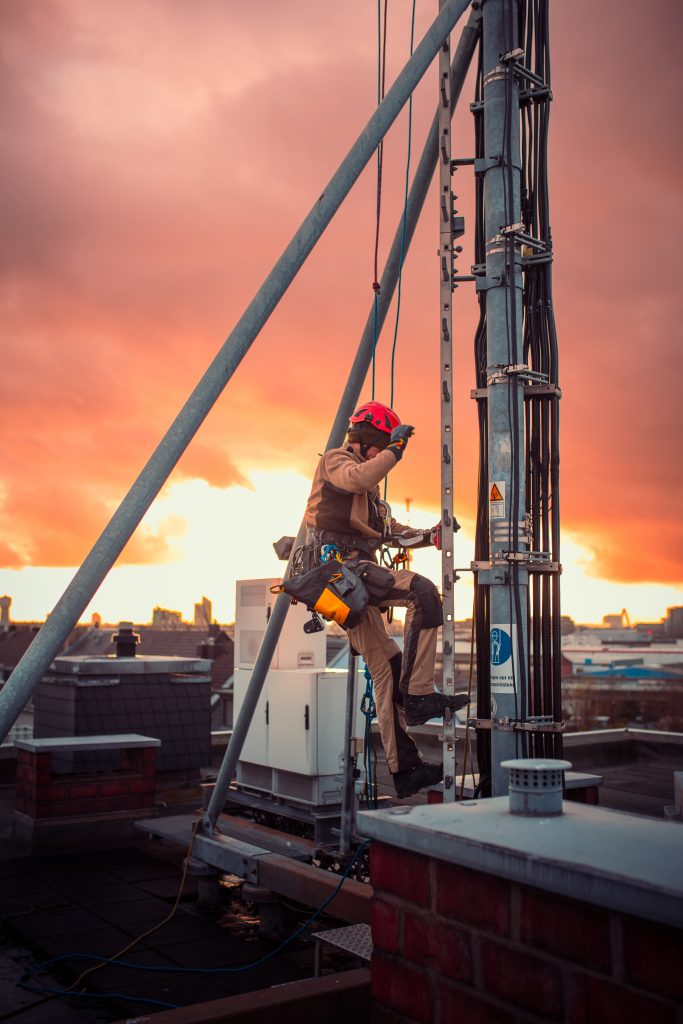 Unsere Experten montieren und warten Mobilfunkanlagen sicher in luftiger Höhe, damit Ihre Verbindung stets stabil bleibt.
